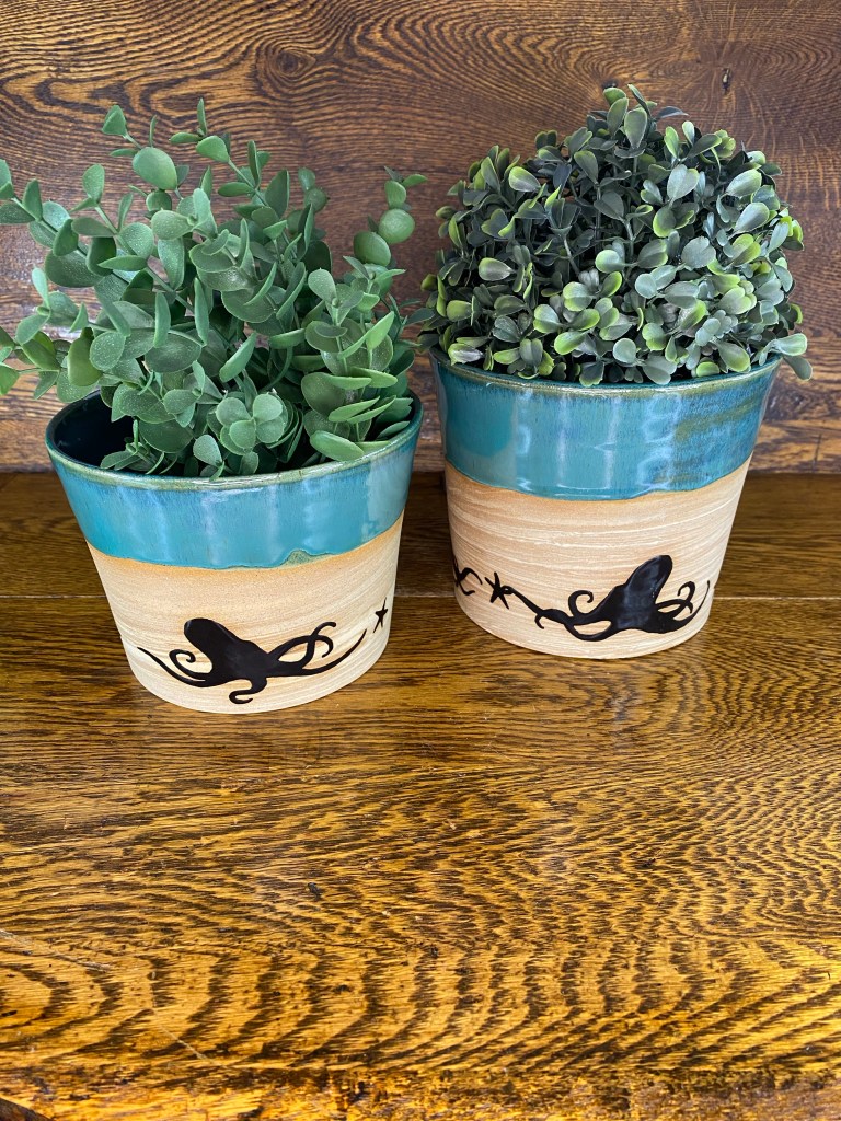 I kept myself busy all summer, making as much pottery as I could possibly make. Of course I made mugs because they’re popular and I keep selling out of them (which is a really fantastic problem to have!). As usual, I made a few planters, but I tried some new designs. Of course I made some bowls, but with some new glazing designs.
